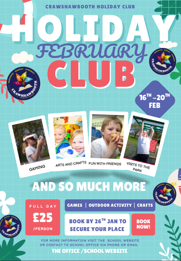 ✨ We’re delighted to announce our February Half Term Holiday Club at Crawshawbooth Primary School! ✨